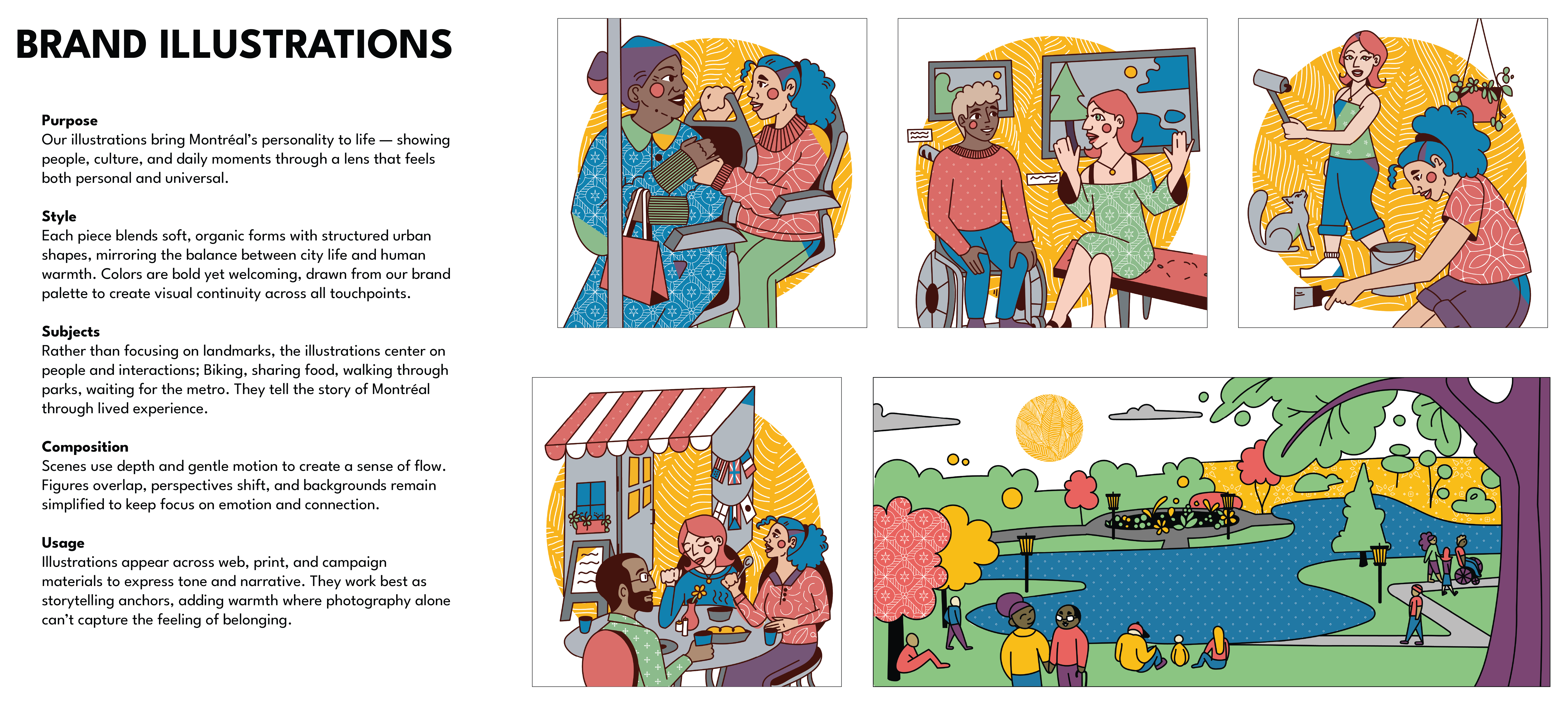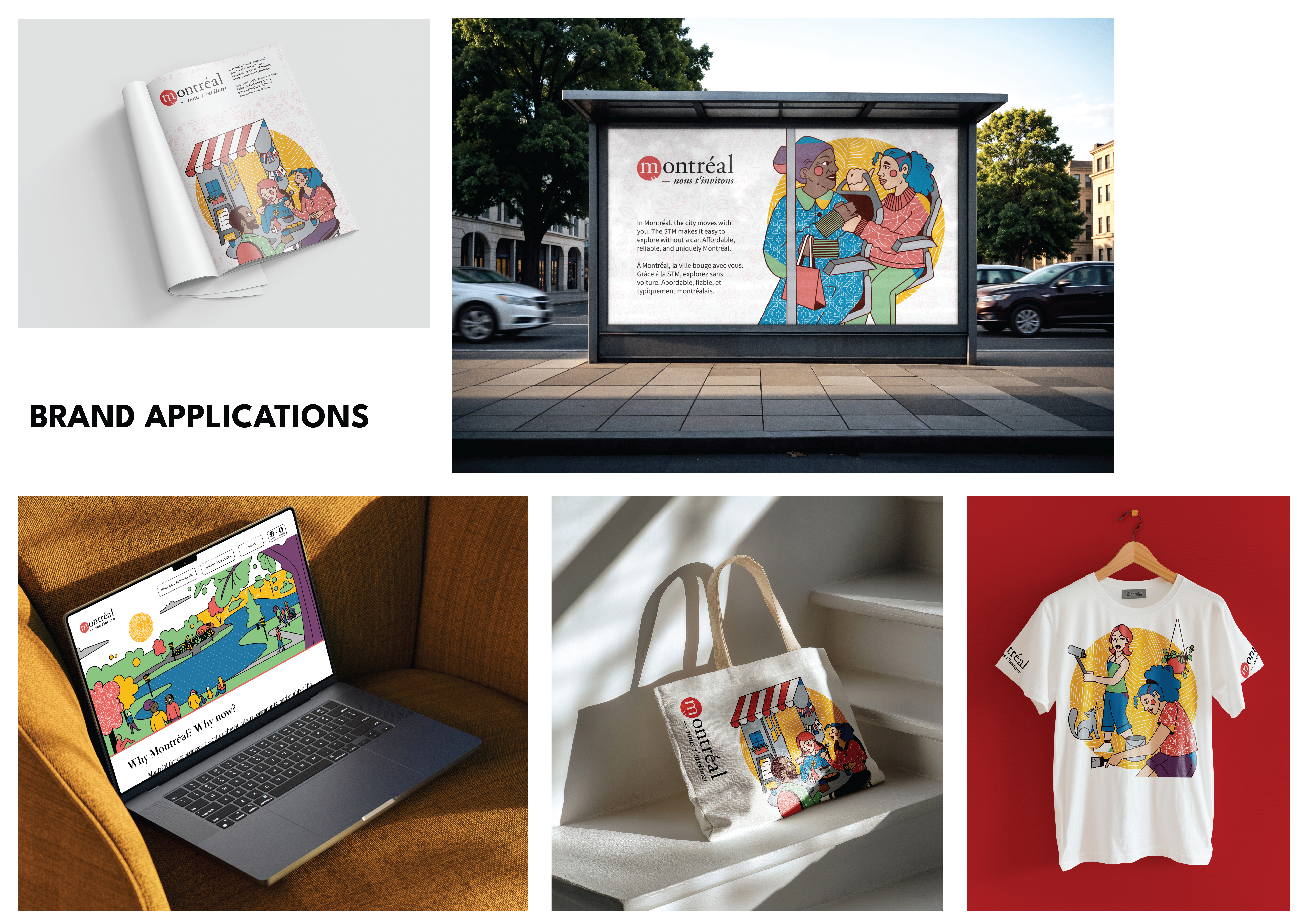 Montréal, nous t’invitons is an advertising campaign that celebrates Montréal’s bilingual spirit and everyday charm. Building on a foundation of inclusivity, connection, and local life — from art and design to transit, parks, and people. Our identity is warm and adaptable, representing Montreal as a city welcoming you to make it your own.